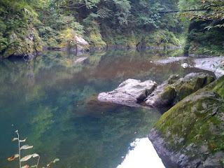 御岳橋を渡り入渓。ここは川幅が広く、竿を振りやすいわりに大岩が多く落ち込みもあるのでなかなか良さそうなんだが、降りてみると川を渡すように謎のロープが何本も張られている。